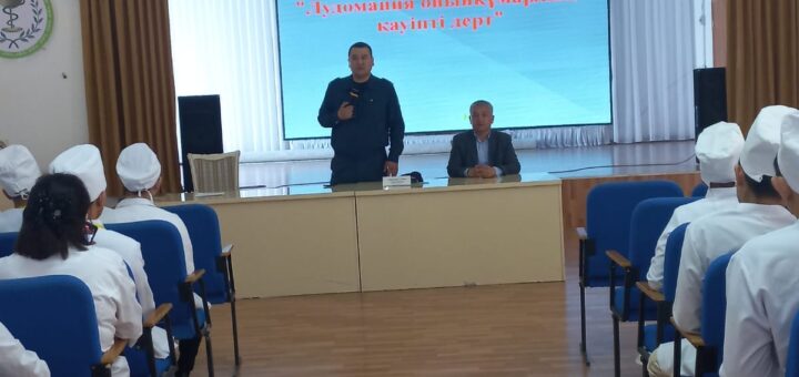 Кеше колледжінің 1 курс студенттері Қызылорда ҚПБ ЖПҚБ ЮПБ аға УПИ-ры полиция майоры С.Алдонгаровпен кездесті.