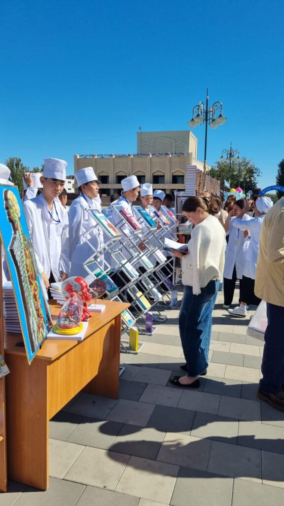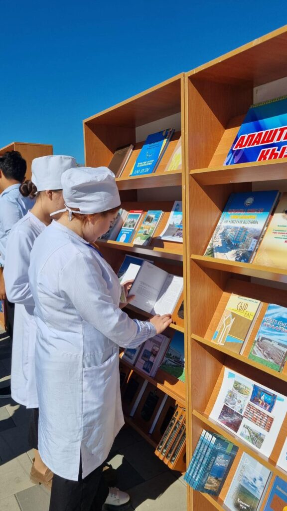 Ауқымды шараға Қызылорда медицина колледжіндегі оқырмандар да қатысты. Кітапхана меңгерушісі Айнұр Раманқұлова, кітапханашы Феруза Жанаева «Алаштың Астанасы – Қызылорда» тақырыбында кітап көрмесіне колледждің оқытушыларының еңбектері, оқулықтары және көркем әдебиеттерді қойды.