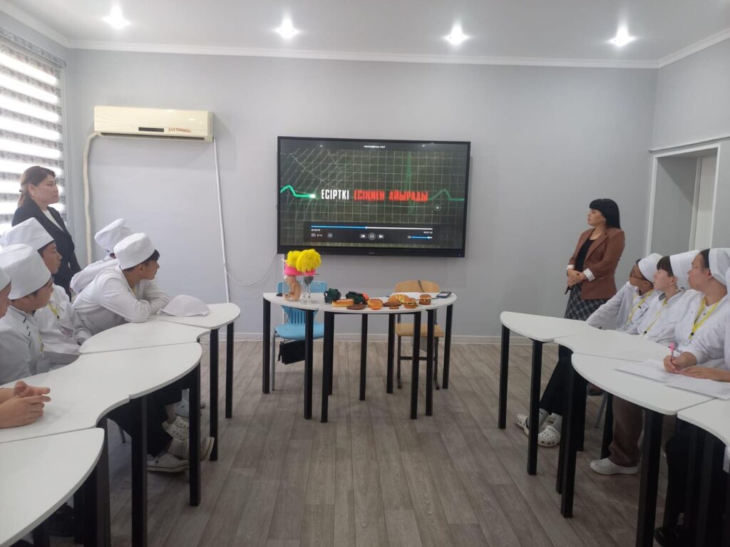 Облыстық жастар орталығының валеолог маманы А. Құлмұратова және колледж медбикесі А. Алибаева білім алушыларға арналған «Тәңір сыйын есірткіге айырбастама» және «Дұрыс тамақтану» тақырыптарында семинар-сабақ өткізді.