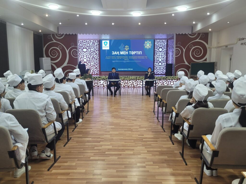 Қызылорда қаласы прокуратурасы бөлімінің аға прокуроры Д.Абылбекұлы мен прокурор А.Оразалиева колледж білім алушыларымен кездесіп, кәмелетке толмағандар арасындағы құқықбұзушылықтың алдын алу бағытында профилактикалық түсіндіру жұмыстарын жүргізді.