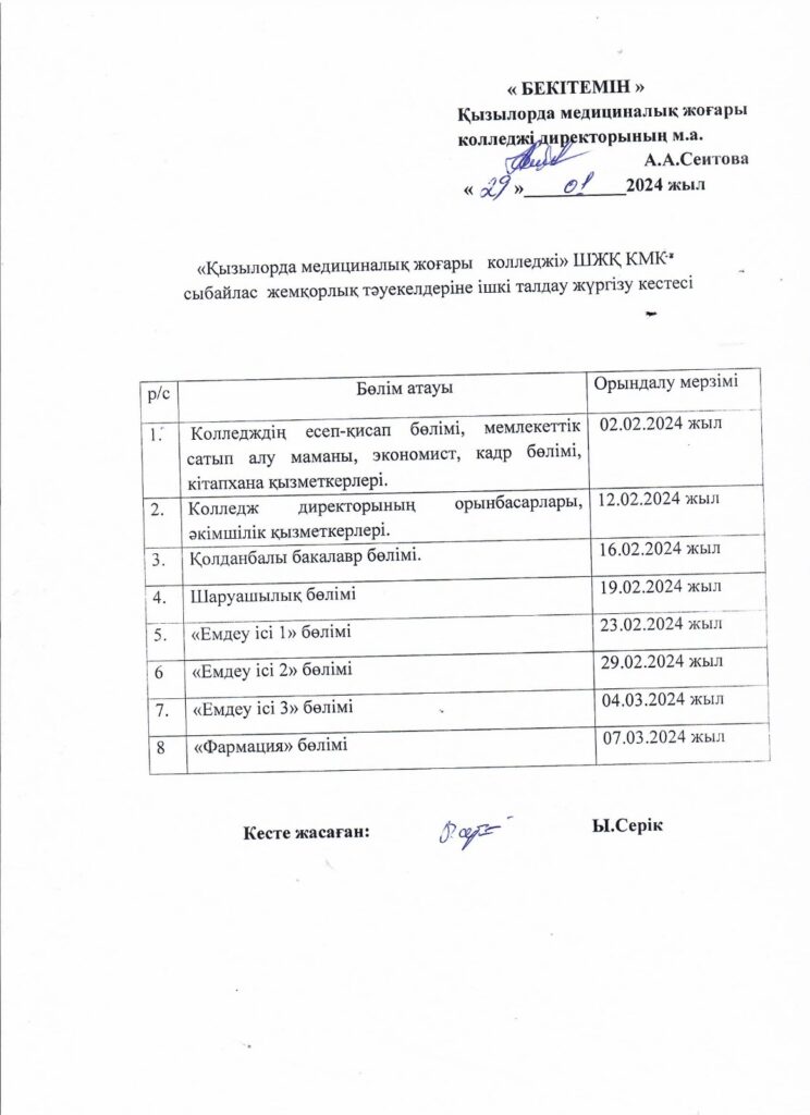 План внутреннего анализа коррупционных рисков